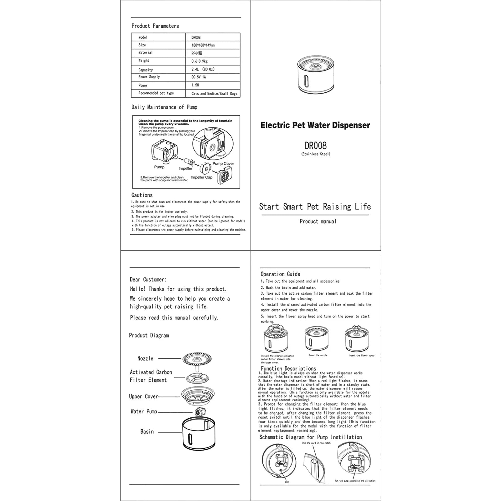Pet fountain is made of finely polished antibacterial PP plastic and Stainless Steel lid, eco-friendly, nontoxic, odorless and durable. Simple quick-release structure is designed for easy removal and cleaning.