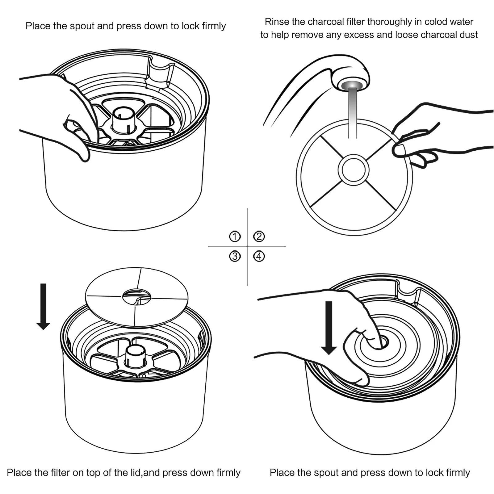 The unique replaceable design filter can effectively filtrate fouling, the hair, odor, sediment and chlorine by 5-layer purification system. Consequently, the fountain can give cleaner water to pets and reduce the risk of developing illness. Charcoal filter help remove which absorbs odors and bad taste.