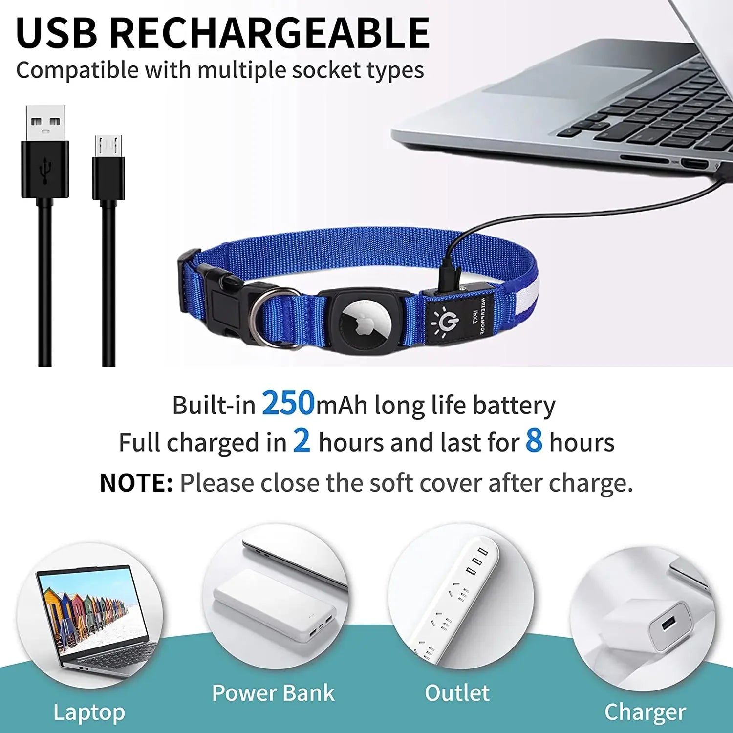For Apple Airtag GPS Finder Led Dog Collar WaterProof Light USB Chargeable Luminous collar Pet For Apple Air Tag Tracker Case